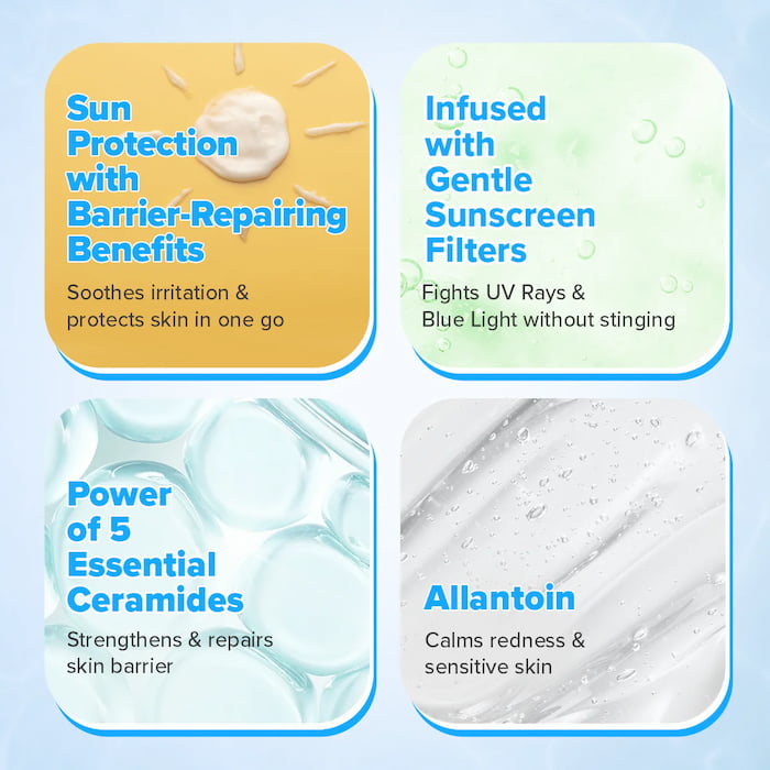 Aqua, Ethylhexyl Methoxycinnamate, Butyl Methoxydibenzoylmethane, Octocrylene, 1,3-Butylene Glycol, Lecithin, Xylitol, Glucose, Anhydroxylitol, Phoenix Dactylifera (Date Palm) Extract, Sodium Acrylate/Sodium Acryloyldimethyl Taurate Copolymer, C15-19 Alkane, Lauryl Glucoside, C12-15 Alkyl Benzoate, Polyglycerin-3, Phenoxyethanol, Ethylhexylglycerin, Cetearyl Olivate, Sorbitan Olivate, Glycerin, Glyceryl Glucoside, Avocado Oil, Laminaria Digitata Extract, Cetyl-Pg Hydroxyethyl Palmitamide, Ceramide 1, Ceramide 2, Ceramide 3, Ceramide 4, Ceramide 6 II, D-Alpha Tocopheryl Acetate, Oxothiazolidine, Allantoin, Titanium Dioxide, Aluminum Hydroxide, Hydrogen Dimethicone, Polyhydroxystearic Acid, C9-12 Alkane, Ethoxydiglycol, Hyaluronic Acid, Zinc Oxide, Hydrogen Dimethicone, Peg-10 Dimethicone and Cyclopentasiloxane.