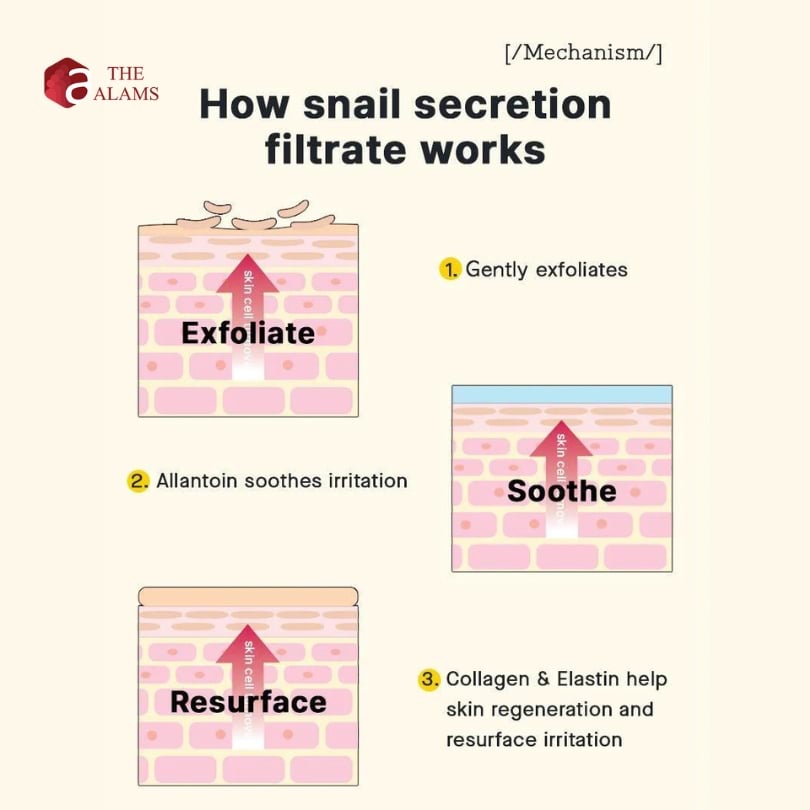 Snail Secretion Filtrate, Betaine, Caprylic/Capric Triglyceride, Cetearyl Olivate, Sorbitan Olivate, Cetearyl Alcohol, Carbomer, Arginine, Dimethicone, Sodium Polyacrylate, Phenoxyethanol, Sodium Hyaluronate, Stearic acid, Allantoin, Panthenol, Xanthan Gum, Ethyl Hexanediol, Adenosine.