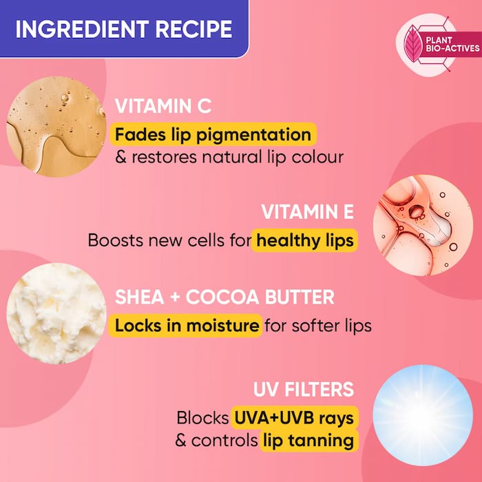 Ricinus Communis (Castor) Seed Oil, Octocrylene, Ethylhexyl Methoxycinnamate, Hydrogenated Soy Polyglycerides (and) C15-23 Alkanes, Sorbitan Olivate, Hydrogenated Polyisobutene, Butyrospermum Parkii (Shea) Butter, Color, Ascorbyl Palmitate, Tocopheryl Acetate, Theobroma Cacao (Cocoa) Seed Butter, Persea Gratissima (Avocado) Oil, Caprylic/Capric Triglyceride (and) Polyurethane-79, Flavor, Pentaerythrityl Tetra-Di-T-Butyl Hydroxyhydrocinnamate, Sucralose.
