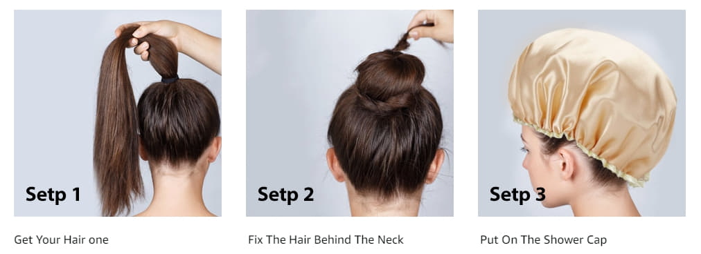 Double Layer Waterproof Large Shower Cap Golden how to use 1 1