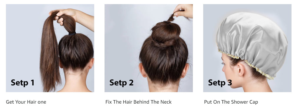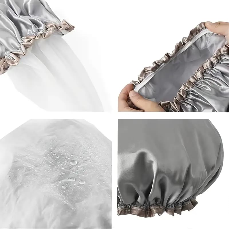 - Use the waterproof lining on the outside for use as a traditional shower cap to keep the hair dry while showering or bathing.