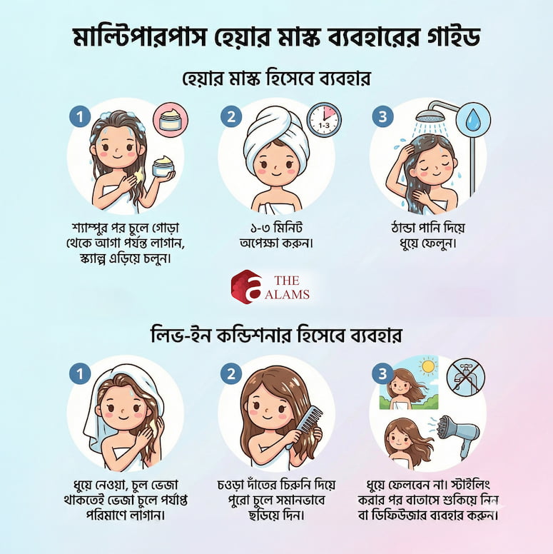 - After shampoo, apply to hair from root to tip avoiding scalp.