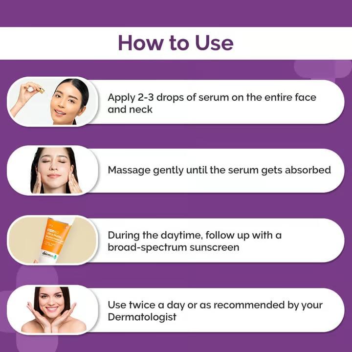 - On cleansed skin pat one to two drops on to face and neck