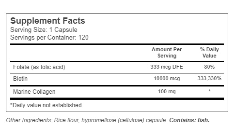 Other Ingredients: Rice Flour, Hypromellose (Cellulose) capsule. Contains: fish.