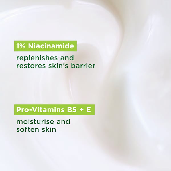 Aqua, Glycerin, Paraffinum Liquidum, Polyglyceryl-3 Methylglucose Distearate, Niacinamide, Dimethicone, Cetyl Palmitate, Cetyl Alcohol, Panthenol, Caprylyl Glycol, Carbomer, Phenoxyethanol, Potassium hydroxide, Tocopheryl Acetate, Acrylates/C10-30 Alkyl Acrylate Crosspolymer, Disodium EDTA, Pantolactone, Borago Officinalis Seed Oil, Stearic Acid, Potassium Carbonate, Bisabolol, Citric Acid, Pentylene Glycol, Urea, Lactic acid, Sodium lactate, Serine, Sorbitol, Sodium Chloride, Allantoin.