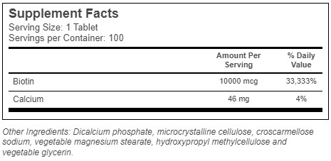 Vitacost Biotin 10,000 mcg, 100 tablets